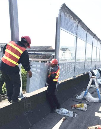 工人們風雨無阻,就連中午也頂著烈日堅持在一線安裝。據(jù)悉,這次隔音屏的安裝主要是唐家橋?qū)幉ê蜏刂莘较驑蜻叾渭s320米,下洋塢橋?qū)幉ǚ较驑蜻叺缆范渭s50米、橋梁段約90米。