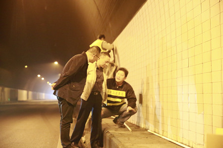 圖為集團副董事長、總經理張建平在黃土嶺隧道整治施工現(xiàn)場檢查