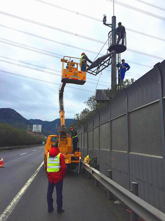 近日,集團工程養(yǎng)護部機電設(shè)備維養(yǎng)中心組織施工單位,頂著寒風(fēng)冷雨對沿線有裂痕破損的云臺太陽能板進行了拆除更換,為即將到來的春運工作打下堅實的基礎(chǔ)。 集團路段共有36個監(jiān)控云臺,它們在提高高速公路管理和服務(wù)水平上起著重要作用,當(dāng)發(fā)生交通異常時,能及時確定事故并實時發(fā)布相應(yīng)的誘導(dǎo)和救援信息,保障道路暢通,減少財產(chǎn)損失。維養(yǎng)中心在之前一次摸底排查中發(fā)現(xiàn)沿線有10處云臺太陽能板由于年久老化,面板晶體出現(xiàn)不同程度開裂破損,嚴重影響太陽能供電效果,導(dǎo)致監(jiān)控設(shè)備無法有效運轉(zhuǎn)。