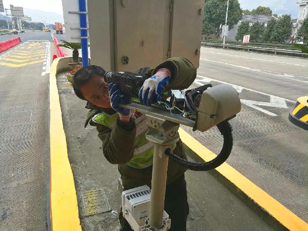 公司工程養(yǎng)護(hù)部機(jī)電設(shè)備維養(yǎng)中心發(fā)現(xiàn)這一問題后,立刻聯(lián)系了車牌抓拍設(shè)備廠家,并在設(shè)備到位當(dāng)天,中心隊(duì)員就著手安裝和接線工作,方便廠家人員后續(xù)調(diào)試,以便盡快啟用自動(dòng)車牌抓拍系統(tǒng)。因調(diào)試過程涉及到與軟件方配合,中心隊(duì)員便一起協(xié)助廠家溝通聯(lián)系,加班加點(diǎn)已成常態(tài)。經(jīng)過雙方近十天努力,一套集車牌抓拍、高清視頻于一體的監(jiān)控設(shè)備佇立在車道安全島上。
