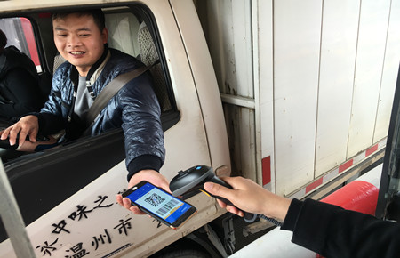 “嘀!”掃碼成功!臺州高速臺州收費所出口車道,黃師傅掏出手機打開支付寶APP,選擇首頁“付款”,手機對準安裝在收費窗口外側(cè)的掃碼設(shè)備,成功支付通行費,隨即拿到通行發(fā)票,車道欄桿自動抬桿放行。掃碼繳費出站僅用了幾秒種。這是臺州高速公路支付寶移動支付通行費第一輛車?!敖裉煺媸沁\氣,正好沒帶現(xiàn)金,沒想到高速也可以支付寶支付通行費了!”黃師傅贊嘆道,“現(xiàn)在出門就帶手機,以前有次忘帶錢包,結(jié)果到了出口才想起來,于是車子里到處找零錢。太尷尬了。”