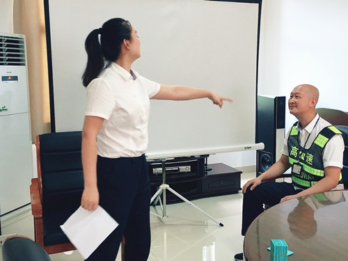 此次培訓(xùn)一改枯燥乏味的傳統(tǒng)形式,工作人員結(jié)合平時窗口實際工作,分別擔(dān)任角色扮演,生動而又形象地演繹窗口服務(wù),真實地反映出收費員在收費過程中遇到的各類情景。比如:ETC車道無法正常通過、遇堵車分流、駕駛員情緒激動、綠農(nóng)車混裝未達到免費、入口如何勸離超限車輛等各類突發(fā)事件應(yīng)急處理辦法。