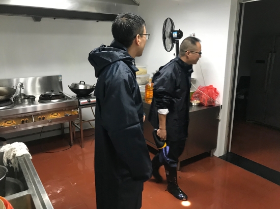 凌晨2點10分,水位猛漲至70厘米,考慮到人員安全,孫明偉立即組織人員叫醒在寢室休息的員工,短短5分鐘內(nèi),將大家全部安全撤離到辦公樓。行政人員紛紛將寢室讓給第二天早上上崗的同事,自己卻整宿未睡,時刻關(guān)注水位上漲情況,直到天亮潮水退下,大家才在自己辦公室凳子上、會議室椅子上稍作休息。