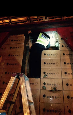 查獲此車,緣于該所分管業(yè)務(wù)的所長助理葉茂在日常例行稽查“綠農(nóng)車”照片中發(fā)現(xiàn)了線索,憑著高度的責(zé)任感和豐富的工作經(jīng)驗,葉茂注意到該車在臺州高速路段出入頻繁,通過幾次“綠農(nóng)車”照片比對,發(fā)現(xiàn)該車所運(yùn)貨物都是用相同紙箱包裝的蘋果,而且每次疊放方式相同,沒有變化。葉茂花費(fèi)大量的時間和精力,調(diào)取近兩個月以來該車出入高速公路的記錄,掌握了其行蹤規(guī)律,當(dāng)發(fā)現(xiàn)該車在2月28日4:18點從溫嶺西出口經(jīng)過,于是通知沿線各收費(fèi)所特別注意該車,并在臺州收費(fèi)所設(shè)卡攔截。在所長孫明偉親自帶隊下,當(dāng)班班長馬德偵在一線密切關(guān)注,終于在3月1日凌晨成功攔截了該車。