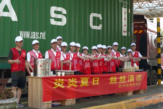 86日,臺州收費所開展“炎炎夏日 絲絲清涼”夏日送清涼志愿服務(wù)活動。在氣溫日益升高的三伏天里,為過往司乘人員送去絲絲清涼。