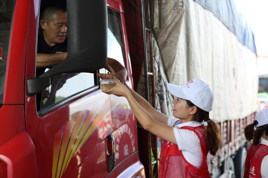 一杯杯清涼的飲品,幾句簡短而溫馨的交流,拉進了志愿者們與司乘人員之間的距離,司乘人員的好評將整個活動現(xiàn)場推向高潮。