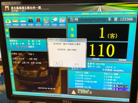 93日凌晨149分,臺州收費所接監(jiān)控中心電話,需要在出口攔截一輛黑色越野車。