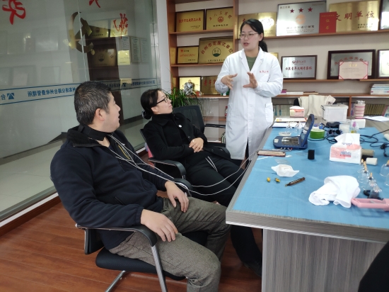 “低頭族頭部容易供血不足,長期以往會得頸椎病的。來,我給你按一會,然后用理療儀針灸一會。