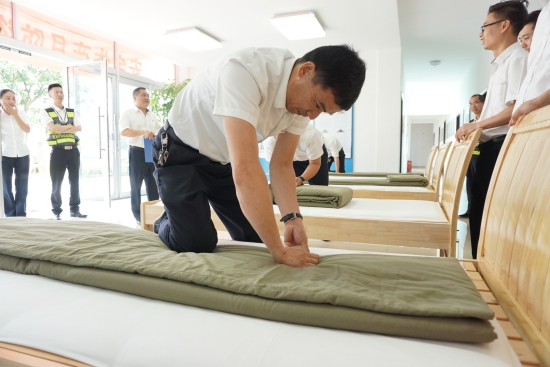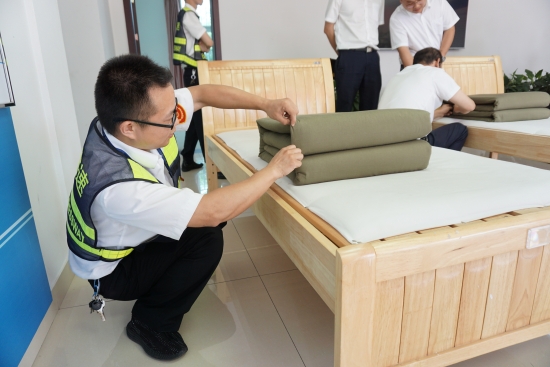 活動(dòng)現(xiàn)場(chǎng),裁判宣布比賽規(guī)則及打分標(biāo)準(zhǔn):評(píng)分從被子整體形狀、平整度、棱角明顯、折疊時(shí)間等方面判斷,規(guī)定在5分鐘內(nèi)完成,共設(shè)置一、二、三等獎(jiǎng)三個(gè)獎(jiǎng)項(xiàng)。內(nèi)務(wù)半軍事化在該所已是常態(tài),參賽選手們很快進(jìn)入狀態(tài),從鋪到疊再到整,駕輕就熟,均能在規(guī)定時(shí)間內(nèi)整出“豆腐塊”。評(píng)委現(xiàn)場(chǎng)進(jìn)行點(diǎn)評(píng)和打分。經(jīng)過(guò)競(jìng)逐,最后副站收費(fèi)四班何翊平奪得一等獎(jiǎng)。比賽分四輪進(jìn)行,且全程用時(shí)不到1個(gè)小時(shí)。