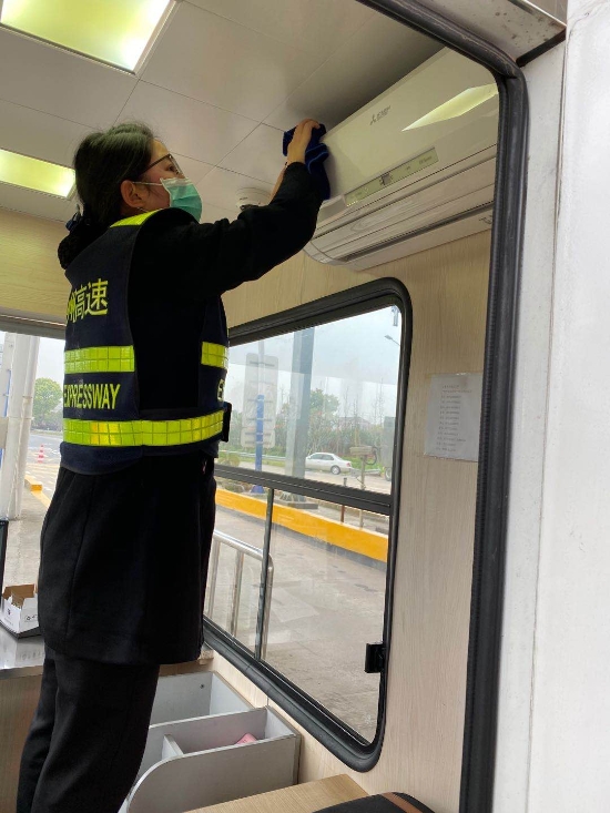 臺(tái)州南收費(fèi)所開(kāi)展疫情期衛(wèi)生大掃除,筑牢防疫墻 近日,臺(tái)州南收費(fèi)所組織全體員工開(kāi)展大掃除活動(dòng),對(duì)車(chē)道、崗?fù)?、寢室、辦公場(chǎng)所等進(jìn)行全面、徹底地清掃和消毒。