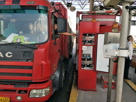 集團收費站投入的自動發(fā)卡機開始試運行