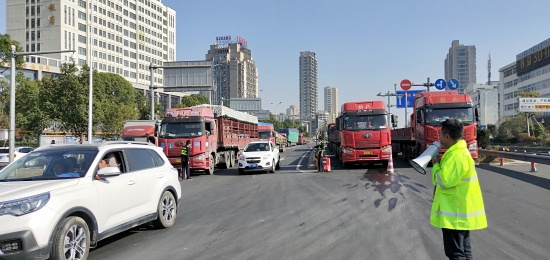 在困難中想對策,所領導班子成員提出“輪流式放行”:入口的車輛分別是從橋上和橋下過來,分為4個車道,每個車道輪流放行5分鐘,這樣井然有序,不容易造成擁擠和交通事故,并且可以快速放行。每個車道前都擺放了一個小紅帽,專人看守。其他人員分別在入口指揮,藍牌貨車和未安裝ETC的車輛從大小客車車道通行,大貨車從混合車道通行,裝有ETC的客車和集裝箱走ETC專用通道。大家不斷穿梭在車道、廣場之間,向司機一遍遍耐心解釋,指揮每一輛車順利通行。1名孕婦行動不便,被分監(jiān)控室接聽電話,查詢入口無信息的車道。所有人一身汗,忙顧不上喝一口水,臨近飯點也沒有主動去吃飯,大家都頂住壓力,黎明黃昏一心想著快速準確高效放行。