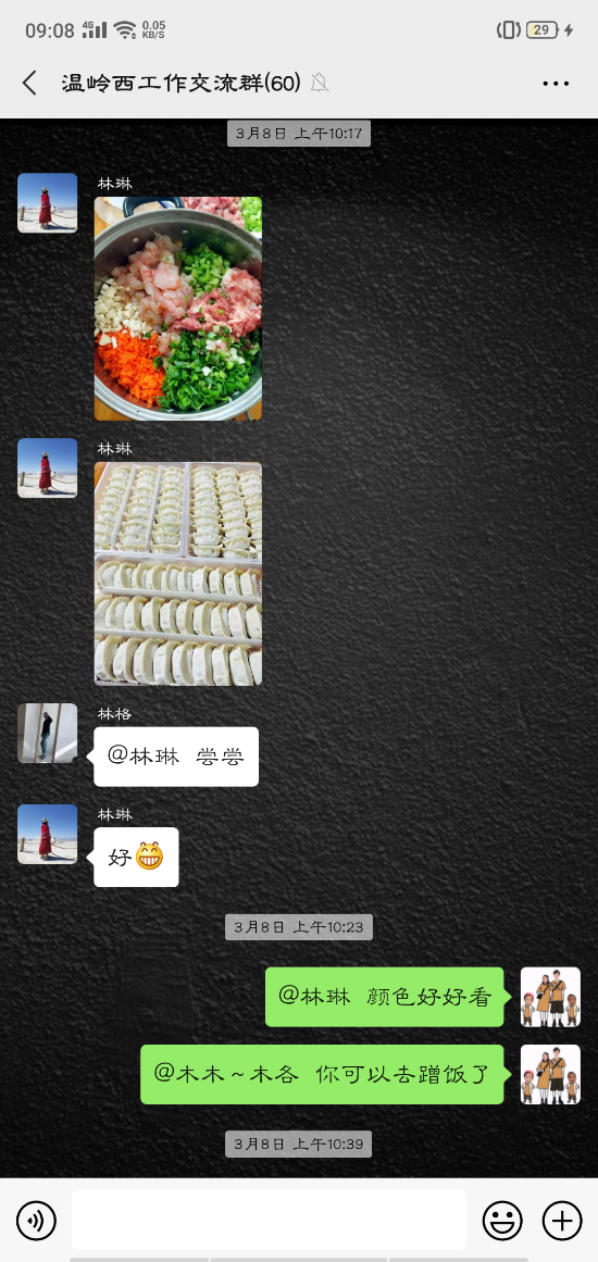 活動中,大家的參與性都很高,紛紛在微信群內(nèi)曬出自己制作的美食:鹽焗雞、可樂雞翅、蔥油角角魚、溫嶺小吃豬肉飯、玫瑰南瓜饅頭……紛紛亮出了自己的拿手好菜,在群里談?wù)摰脽峄鸪斓耐瑫r,也不忘介紹一下自己做的菜。甚至很多男同事也紛紛曬出自己的最佳廚藝,祝福女同胞節(jié)日快樂。