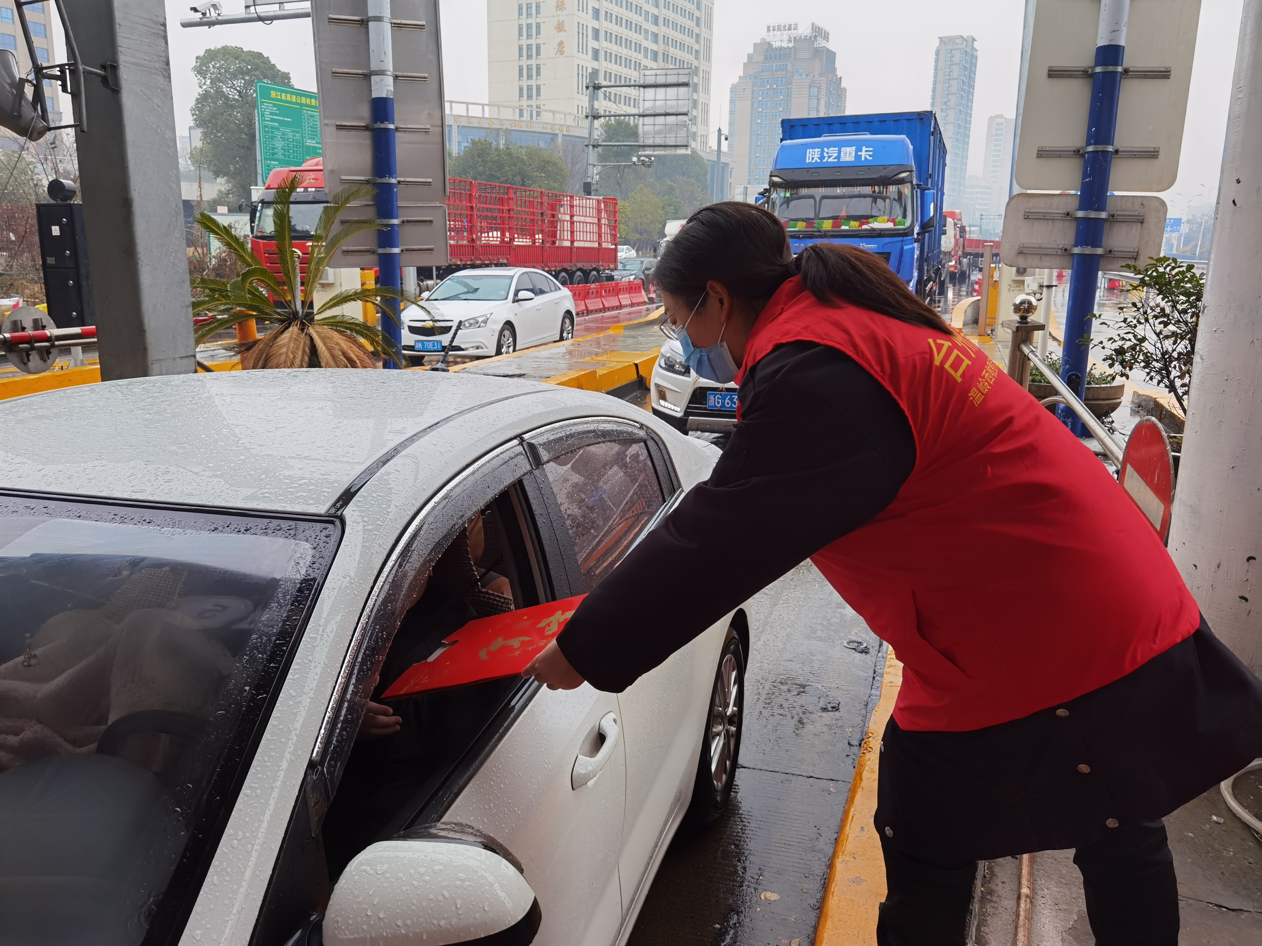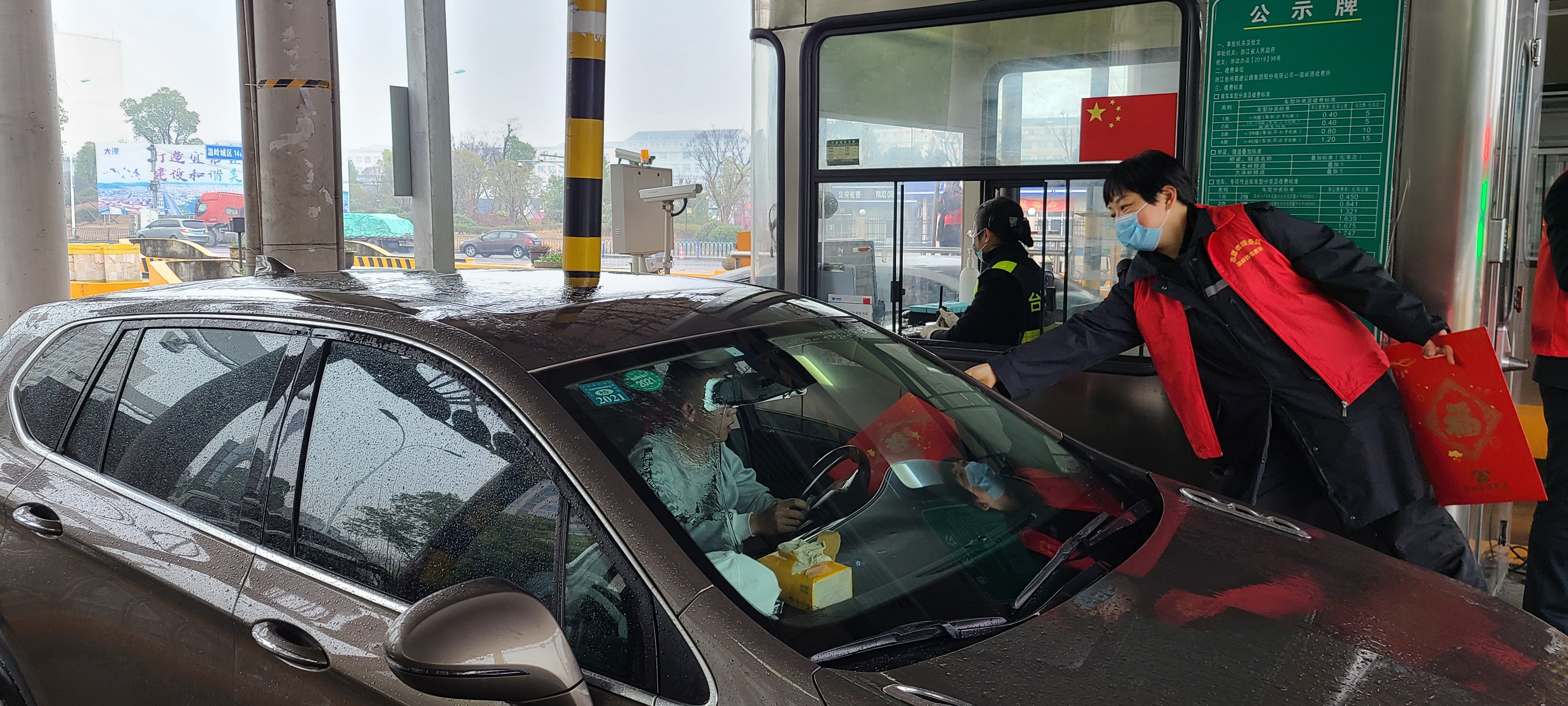 “師傅,新年快樂!”一句句響亮的新春祝福在溫嶺西收費(fèi)站上空回繞。