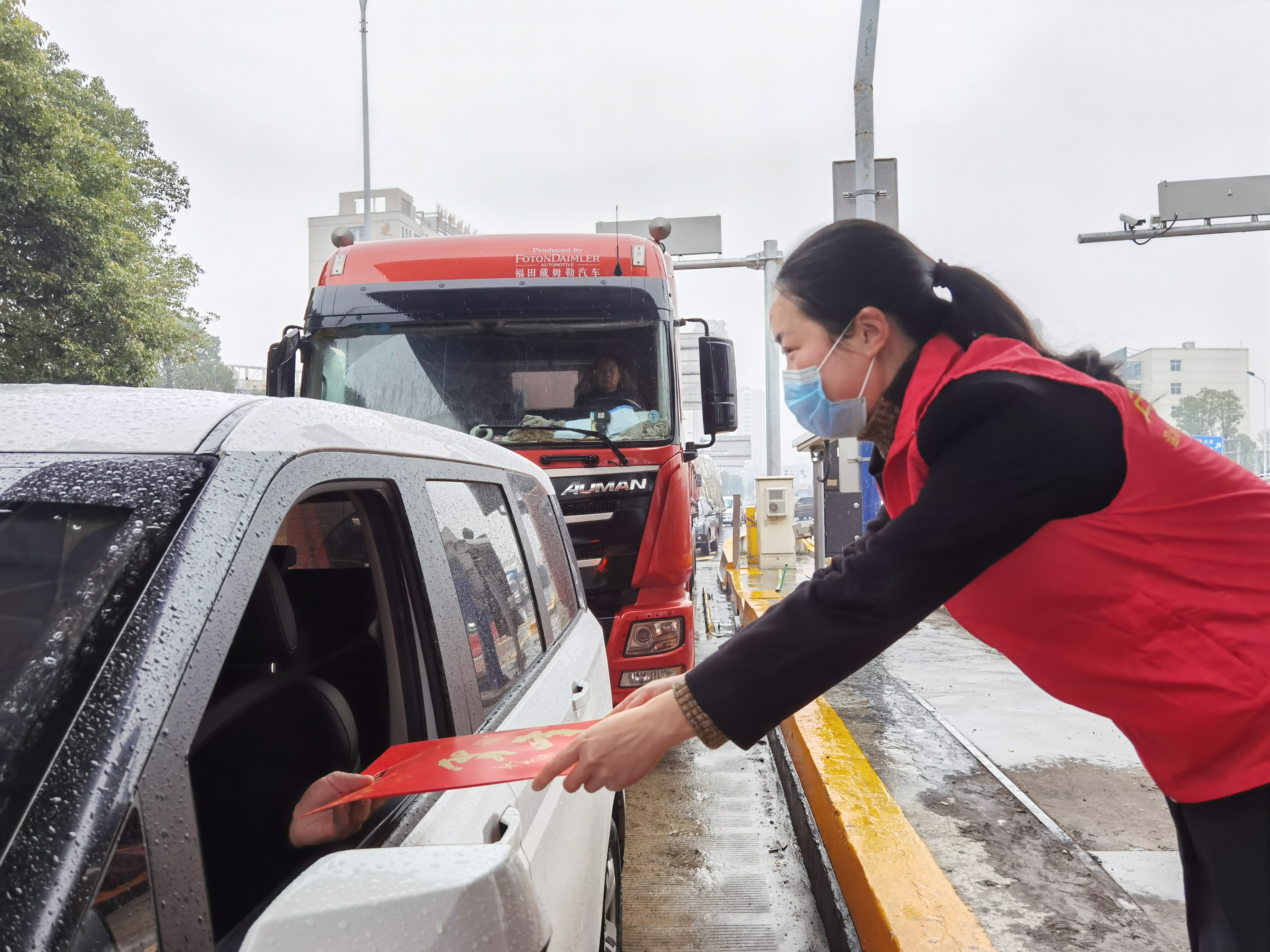 在春節(jié)來臨之際,為更好地傳承我國(guó)新春佳節(jié)的習(xí)俗,讓廣大司乘人員感受到喜慶溫馨的節(jié)日氣氛,1月21日上午,溫嶺西收費(fèi)所志愿者們開展“迎新春、送春聯(lián)、送祝福”活動(dòng),收到春聯(lián)的司乘朋友們,臉上洋溢著幸福的微笑。