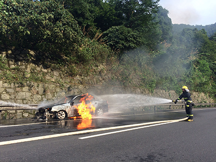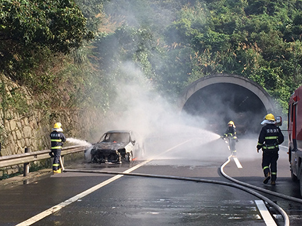 7月14日下午4點(diǎn)18分,一輛轎車在塘嶺隧道寧向出口一百米處自燃起火。轎車被燒成空殼,所幸火災(zāi)沒有造成人員傷亡。