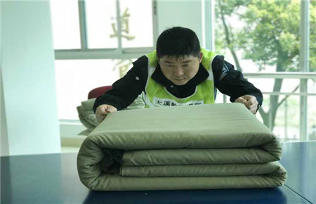大溪嶺隧道所開展了內(nèi)務(wù)整治疊被競賽。比賽要求是在規(guī)定的5分鐘時(shí)間內(nèi)將被子壓平壓實(shí),捏出被子的棱角,疊成形。隨著裁判員的一聲令下,隊(duì)員們立馬進(jìn)入狀態(tài),迅速將被子展開,對(duì)折,壓平,切槽,起角……一步一步地整理,時(shí)間一分一秒地過去,他們鎮(zhèn)定自若,嫻熟地動(dòng)作,熟練的技巧,將散亂的被子變成方方正正的“豆腐塊”。有些隊(duì)員甚至用了二三分鐘就疊好了。內(nèi)務(wù)整治包括疊被都是隧道所正規(guī)化整治的一部分內(nèi)容,長期堅(jiān)持的良好習(xí)慣讓員工養(yǎng)成了嚴(yán)謹(jǐn)?shù)纳钭黠L(fēng),保持了宿舍內(nèi)務(wù)衛(wèi)生的整齊劃一。