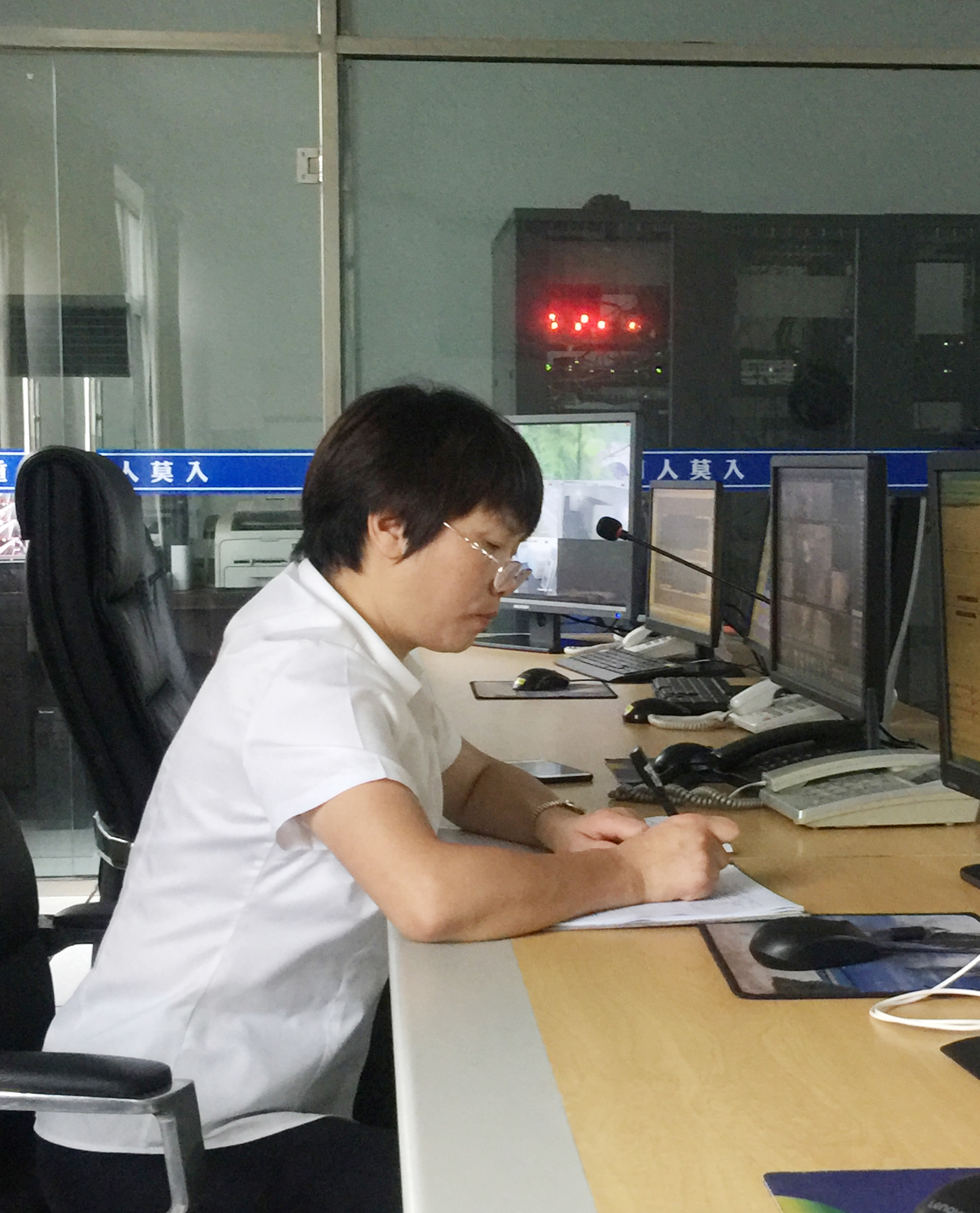 開朗樂觀,善于團結(jié)同事,幾乎是班隊“組織部隊”擔當?shù)?/span>“開心果”,她就三隊中控員金素彬別看她平時嘻嘻哈哈大大咧咧,工作起來一板一眼,來不得半點馬虎。接班上崗時,只見她一手拿筆,架起老花鏡,認真做好中控交接班記錄,仔細檢查監(jiān)視設備運轉(zhuǎn)情況,確保中控設備都正常運行。中控室內(nèi),幀幀銀屏,一覽車流,幅幅畫面,縱觀隧道南北動向。7月6日下午4點47分,金素彬敏銳地發(fā)現(xiàn)一輛集裝箱拋錨在寧向隧道停車帶,一半身掛在主車道上,車流如織呼嘯過,情況十分危險。于是鏡頭切換、廣播呼叫、電話通報、更改信號燈、情報板、追蹤記錄……一切操作有條不紊、井然有序,如同久經(jīng)沙場的指揮官。就這樣,她又一次通過熒屏和電話,排除安全隱患,保證了隧道的暢通。面對進入倒計時退休日子,她感慨千萬:“十幾年的中控工作還真是舍不得,如果公司需要,我會義不容辭留下為公司發(fā)展作貢獻。