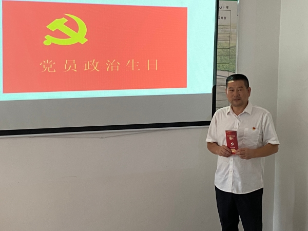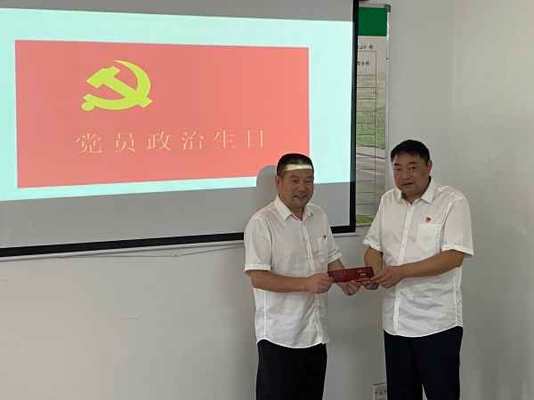 會(huì)議現(xiàn)場(chǎng),黨支部書記李海福向李學(xué)來贈(zèng)送“政治生日”賀卡,并送上“政治生日”祝福,讓李學(xué)來感受到來自黨組織的關(guān)懷。