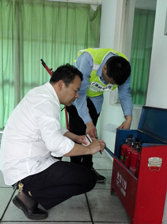 圖為檢查現(xiàn)場 該所副所長應(yīng)錦清帶領(lǐng)隊(duì)員仔細(xì)檢查了南北配電房的機(jī)電設(shè)施,隨后對(duì)管理房的干粉滅火器、隧道內(nèi)的泡沫滅火器,配電房、中控室的二氧化碳滅火器進(jìn)行逐一檢查,查看每個(gè)滅火器的壓力值、出氣管有無彎折、堵塞、損傷,壓把和閥體等金屬件有無變形和銹蝕,是否還在使用年限之內(nèi)等等,并做好相應(yīng)的檢查記錄。 陳智慧