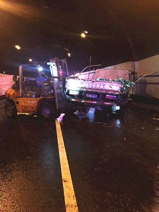 大溪嶺隧道內(nèi)發(fā)生貨車側(cè)翻事故