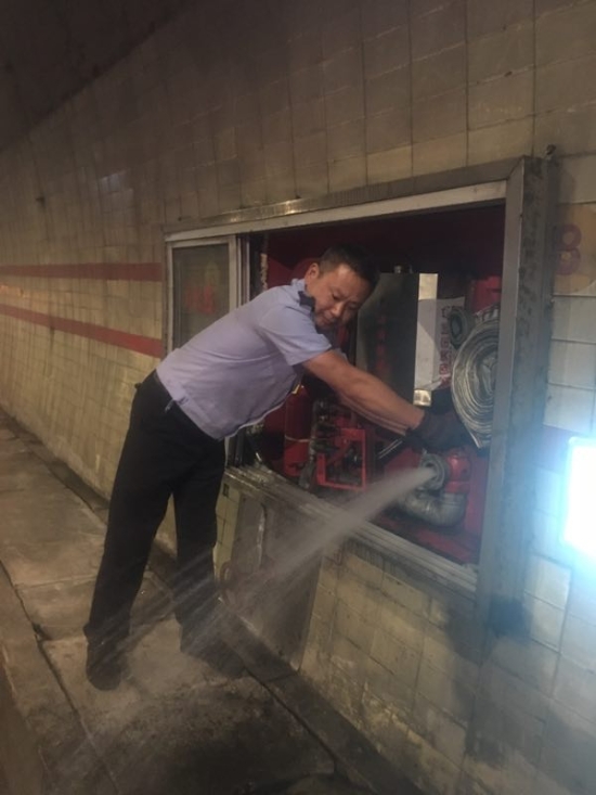 圖為張貼火災(zāi)報(bào)警提示標(biāo)語(yǔ) 此次隧道清洗工作主要針對(duì)隧道內(nèi)的機(jī)電設(shè)施維修與保養(yǎng),清潔監(jiān)控和照明燈,修復(fù)故障攝像機(jī);檢修消防設(shè)施,如火災(zāi)報(bào)警采用點(diǎn)火測(cè)試、手動(dòng)報(bào)警、緊急廣播和電話測(cè)試,以及檢查消防箱;隧道內(nèi)指示標(biāo)記檢查,如人通、汽通檢查保養(yǎng),隧道風(fēng)機(jī)檢測(cè),貼安全提示標(biāo)志,修復(fù)提示燈等。 隊(duì)員們放棄休假,加班加點(diǎn),借著隧道清洗一類施工的有利條件,把隧道內(nèi)需報(bào)修的各種設(shè)備進(jìn)行維修和保養(yǎng),保障了隧道內(nèi)機(jī)電、消防設(shè)施的正常運(yùn)行,排除安全隱患,為即將到來(lái)的中秋小長(zhǎng)假提供明亮、安全的隧道行車環(huán)境。 陳智慧