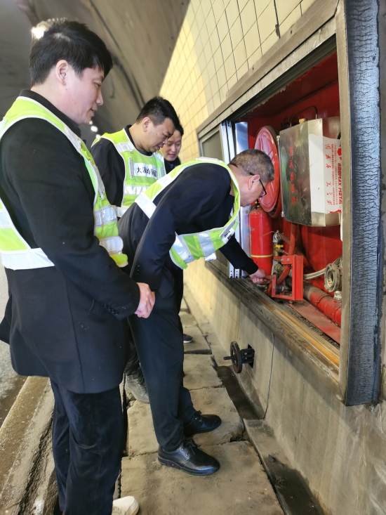 圖為檢查組檢查隧道內(nèi)的消防設備