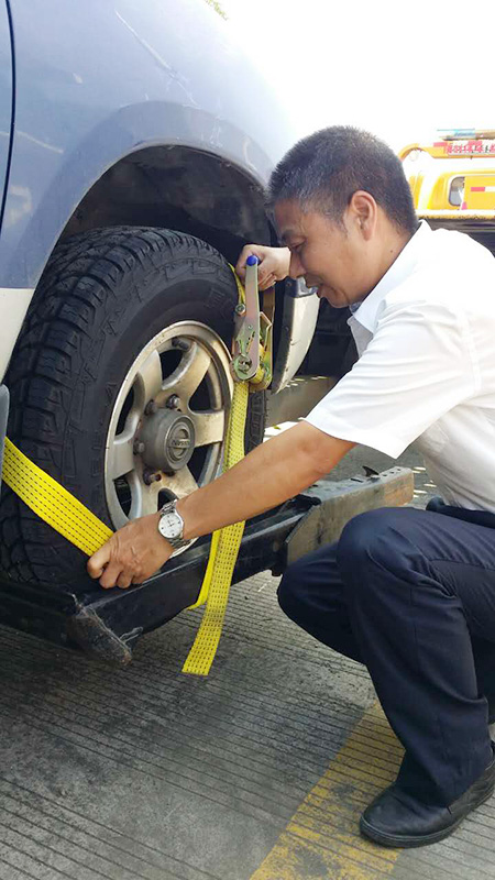 綁帶雖小,卻是安全拖曳環(huán)節(jié)上的重要一環(huán),一旦捆綁不牢,車輛滑落,極易造成安全事故。施救中心抽一切可利用時間,抓一切安全隱患細節(jié),讓每一個在崗員工進行了輪胎捆綁練習(xí),力求每一個員工準確掌握各種綁帶使用技能,特別是三種標準的輪胎捆綁方式,更是要求他們熟練掌握,并應(yīng)用到實際工作中,嚴禁不綁、隨便綁、胡亂綁。