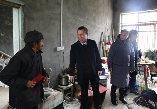 在塘上村,張建平走進(jìn)80多歲老人鮑于朝簡陋的家中,緊緊握住老人的雙手噓寒問暖,親切詢問身體狀況,家庭生活等情況,囑咐老人保重身體。