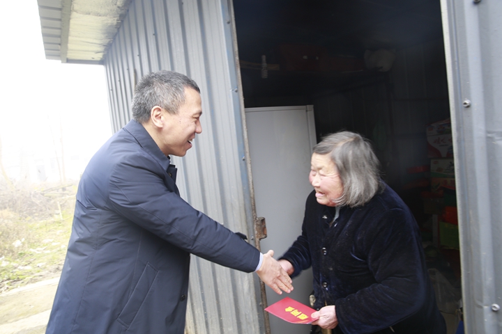圖為集團總經(jīng)理張建平慰問塘上村老人