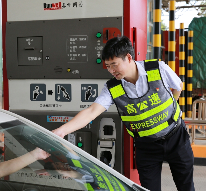 而在對(duì)面發(fā)卡的安全總監(jiān)項(xiàng)同富正襟危坐,等待著車子的駛?cè)耄?/span>“記住動(dòng)作就忘記微笑,笑起來又忘記要說什么......真有點(diǎn)手忙腳亂的,做好收費(fèi)員,不容易?!?/span>
