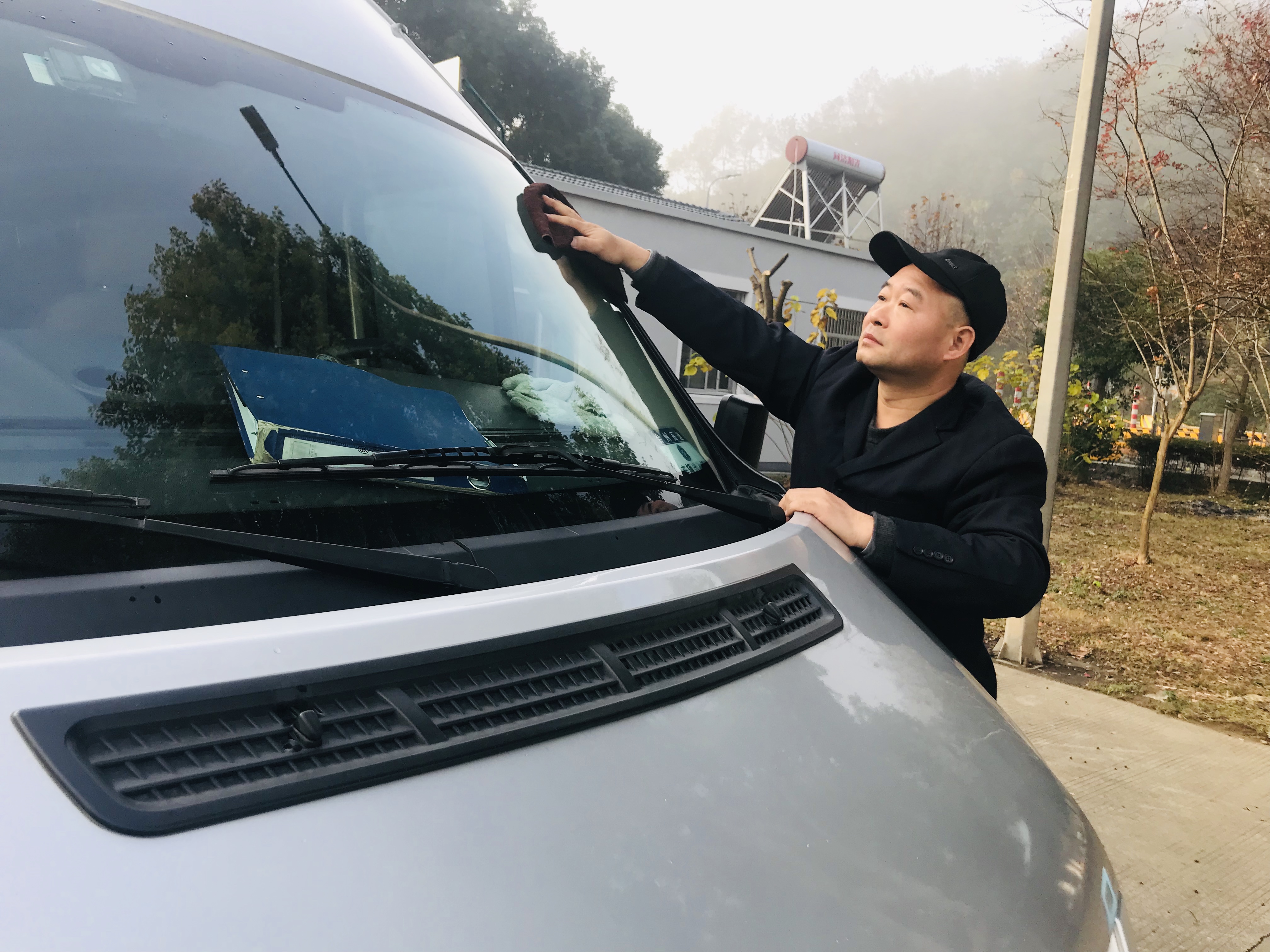 圖為楊堅(jiān)在擦洗車(chē)輛