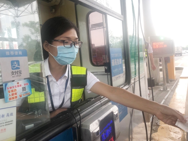 7月8日,一輛來自江蘇的小轎車由于沒帶現(xiàn)金也沒有支付寶,無法繳納通行費(fèi),司機(jī)表現(xiàn)頗為激動(dòng):“是你們沒有微信支付,又不是我不繳費(fèi),這是你們的問題!”丁小燕不卑不亢,她明白司機(jī)也需要理解,只有換位思考,將心比心,才能贏得更多的理解與尊重。于是她陪同司機(jī)一起,耐心有禮地向后面車輛的司乘解釋協(xié)調(diào),最終換得了現(xiàn)金,支付了通行費(fèi)。當(dāng)車輛啟動(dòng)時(shí),司機(jī)帶著歉意的笑容和她說了聲“謝謝,再見!”