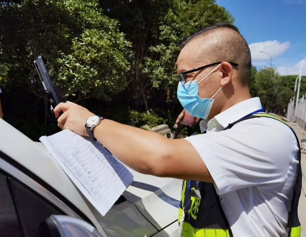 這是征費(fèi)四班班長(zhǎng)鄭星和駕駛員的對(duì)話,他手持iPad,不停地在屏幕上滑動(dòng)著、查詢著。天氣炎熱,貨車開車時(shí)較為顛簸,3M膠軟化黏不牢,ETC設(shè)備容易脫落。ETC設(shè)備一旦掉落,會(huì)提示“標(biāo)簽已失效”,就無(wú)法正常工作,不能實(shí)現(xiàn)不停車出入高速公路ETC車道給來(lái)往司機(jī)和收費(fèi)人員增添了很多麻煩。為全力配合ETC服務(wù)需要,鄭星冒著酷暑高溫,不厭其煩幫著司乘人員解決問題,一天下來(lái)工作服濕了又干,干了又濕,他就是臺(tái)州高速上的最美堅(jiān)守者。