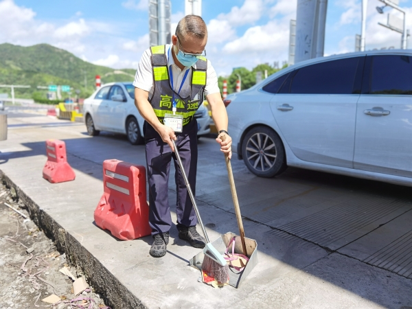 烈日灼燒著大地,高速兩邊的樹葉都被曬得打了卷,悶熱的空氣讓人喘不過氣來(lái),在溫嶺西收費(fèi)站,不少司乘人員在站時(shí),隨手將食品的塑料袋、煙頭、塑料瓶等垃圾丟棄在收費(fèi)站出口處,班長(zhǎng)陳軍見到隨時(shí)清掃路面,保持收費(fèi)區(qū)域衛(wèi)生干凈整潔。彎腰、清掃、起運(yùn),看似簡(jiǎn)單的一組動(dòng)作,陳軍每天要重復(fù)幾十次,衣服一天不知要被汗?jié)穸嗌俦椋?/span>但他堅(jiān)持以良好的形象展示臺(tái)州高速的精神風(fēng)貌。他就是臺(tái)州高速上的最美堅(jiān)守者。