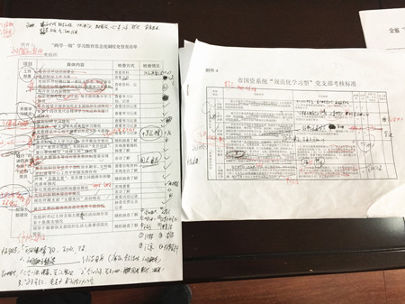 圖為臺州收費(fèi)所整齊規(guī)范的黨建臺賬 檢查組按照督查清單,主要檢查了各支部“兩學(xué)一做”學(xué)習(xí)教育常態(tài)化、制度化開展工作等黨建臺賬資料,包括各種學(xué)習(xí)計劃、安排、學(xué)習(xí)筆記、學(xué)習(xí)記錄、會議記錄、文明創(chuàng)建、“作風(fēng)建設(shè)年”等內(nèi)容的完成落實情況。 通過監(jiān)督檢查,集團(tuán)檢查組對各支部進(jìn)行了全方位、多角度的了解,雖然發(fā)現(xiàn)存在一定問題,但各支部落實黨建工作情況總體良好,尤其是臺州收費(fèi)所黨支部,不僅材料積累豐富,而且檔案臺賬整齊完備、規(guī)范有序,值得其它支部學(xué)習(xí)。 下一步,各支部將針對檢查中發(fā)現(xiàn)的問題,迅速抓好整改落實,推進(jìn)公司黨建工作再上新水平。 毛宇航