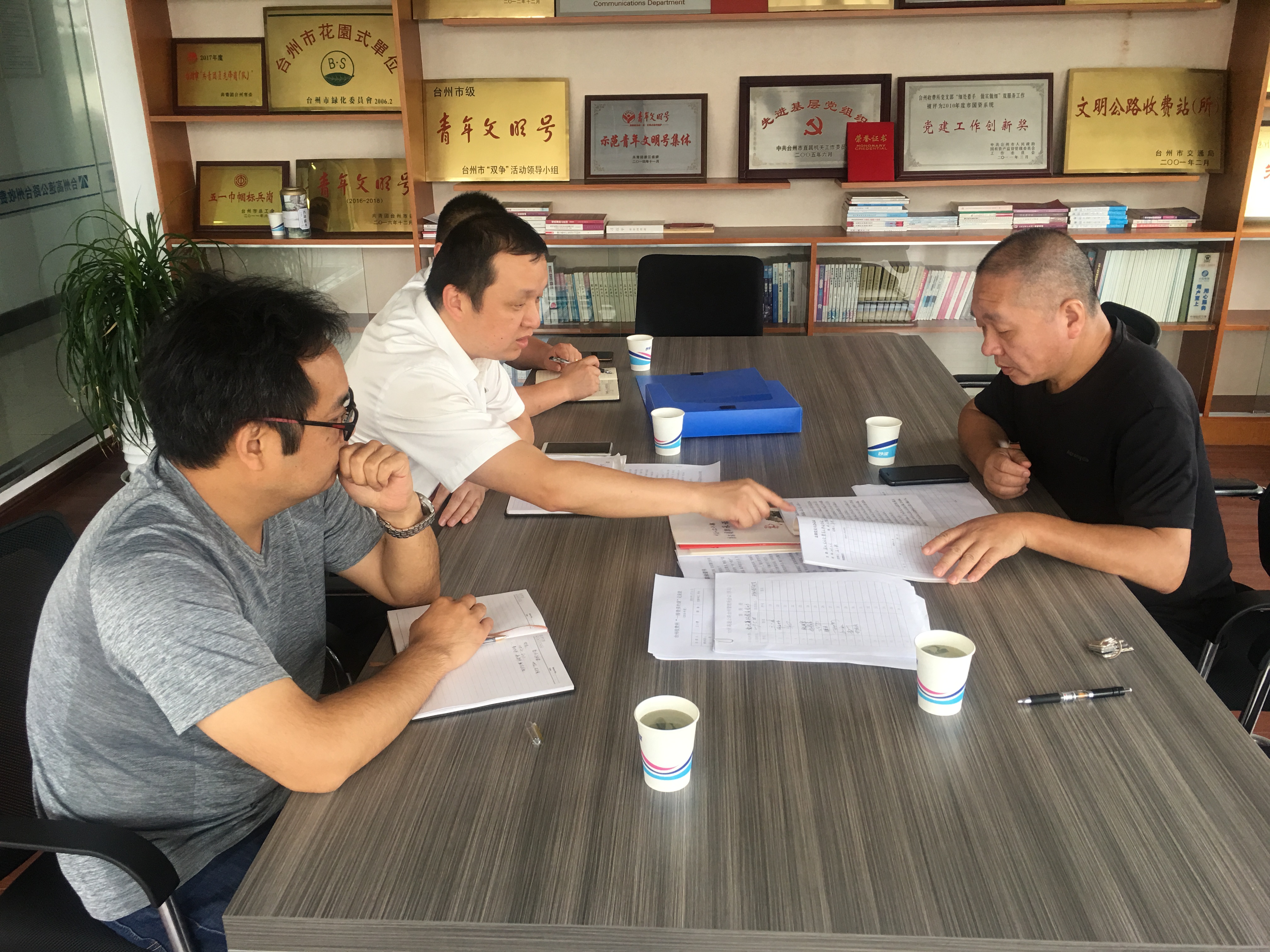 圖為檢查組在臺州收費(fèi)所檢查 本次檢查以年初簽訂的《黨風(fēng)廉政建設(shè)責(zé)任書》和新出臺的《集團(tuán)公司黨風(fēng)廉政建設(shè)責(zé)任制檢查考核辦法》為依據(jù),以廉政教育開展頻率及支部書記上廉政黨課完成情況為重點(diǎn),通過聽取責(zé)任人工作情況介紹、翻閱相關(guān)工作臺帳資料等形式,查證黨風(fēng)廉政建設(shè)責(zé)任實(shí)際落實(shí)情況。