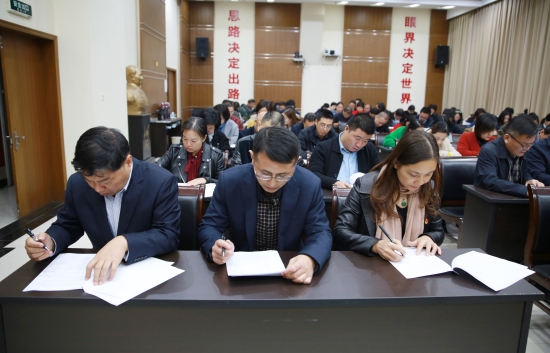 圖為測試現(xiàn)場 此次測試采取閉卷形式,分黨員和非黨員試題兩卷,測試范圍包括“不忘初心、牢記使命”主題教育、十九大報告及習(xí)近平新時代中國特色社會主義思想等知識。大樓近100名員工參加測試。 此次測試既是對學(xué)習(xí)效果的檢驗考核,又是對學(xué)習(xí)成果的鞏固提升,將進一步激發(fā)全體員工學(xué)習(xí)的主動性和積極性,使政治信念更加堅定、理論知識更加充沛、工作熱情更加高漲、行動更加積極務(wù)實,真正起到了以考促學(xué)、以考促記、以考促行的目的。大家紛紛表示要以此次知識測試為東風(fēng),鼓足干勁、學(xué)以致用,勇于擔(dān)當、忠誠履職,在平凡的崗位上干出優(yōu)異成績,努力開創(chuàng)各項工作新局面。 馮曉潔