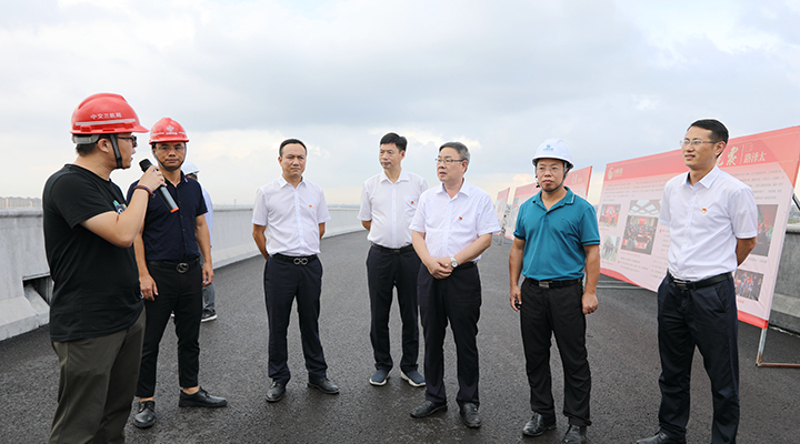 一行人先后來到路澤太三標(橋上架橋)、路澤太二標(機場樞紐)現(xiàn)場進行實地參觀,在現(xiàn)場聽取了路澤太人員的情況介紹,感受到了路澤太快速路的恢弘氣勢,并為作業(yè)人員們熱火朝天的干事氛圍所感染。現(xiàn)場人員對路澤太公司只爭朝夕搶進度、精益求精重質量、全力以赴保通車的責任感和使命感表示高度贊賞。