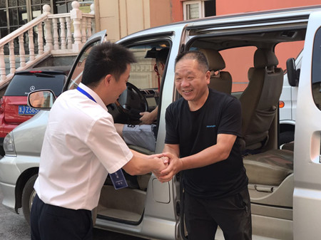 圖為集團(tuán)監(jiān)察室負(fù)責(zé)人與工作人員親切握手