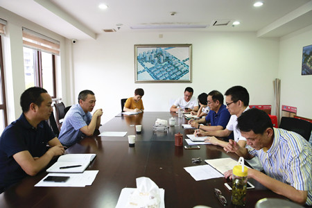 圖為集團副董事長、總經(jīng)理張建平認真聽取相關(guān)人員下階段工作安排匯報