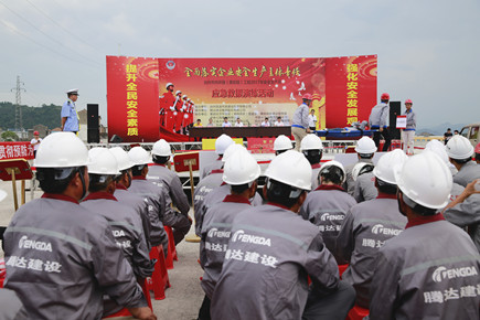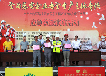 集團總工程師江輝,安全總監(jiān)項同富,騰達建設(shè)集團總經(jīng)理楊九如出席活動,黃巖東區(qū)、南區(qū)建設(shè)指揮部相關(guān)人員,內(nèi)環(huán)路(黃巖段)工程施工單位項目領(lǐng)導、專職安全員,市政公司全體員工參加活動。