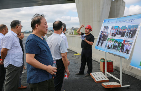 圖為在6#立交上了解工程建設(shè)情況 老干部一行實地踏勘了內(nèi)環(huán)路(黃巖段)各施工現(xiàn)場,全面了解了四個標(biāo)段工程當(dāng)前建設(shè)情況。一路上,老干部們一面聽取各標(biāo)段工作匯報,一面用手機(jī)相機(jī)記錄現(xiàn)場當(dāng)前建設(shè)情況,當(dāng)知道今年11月11日內(nèi)環(huán)路將實現(xiàn)主線通車時,老干部們紛紛豎起大拇指,為內(nèi)環(huán)路建設(shè)的進(jìn)度和質(zhì)量點贊,同時表示將多走多看,為內(nèi)環(huán)建設(shè)盡自己的一份力。 鐘彪對老干部們的關(guān)心和支持表示衷心感謝,并希望各位老干部多指導(dǎo)、多監(jiān)督、多提寶貴意見,助力臺州城市建設(shè)趕超發(fā)展。 張琛