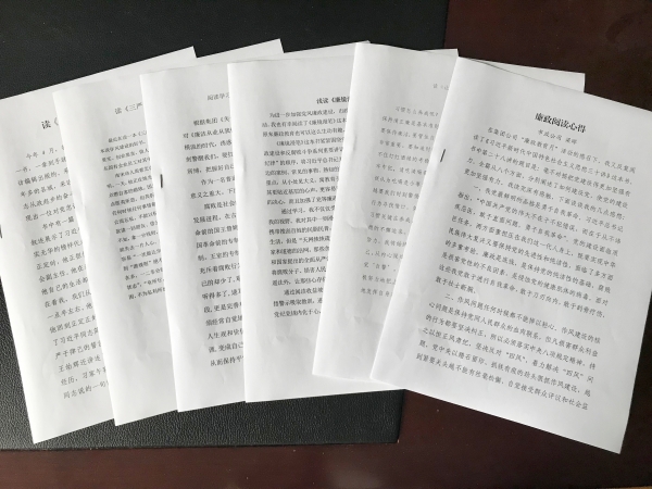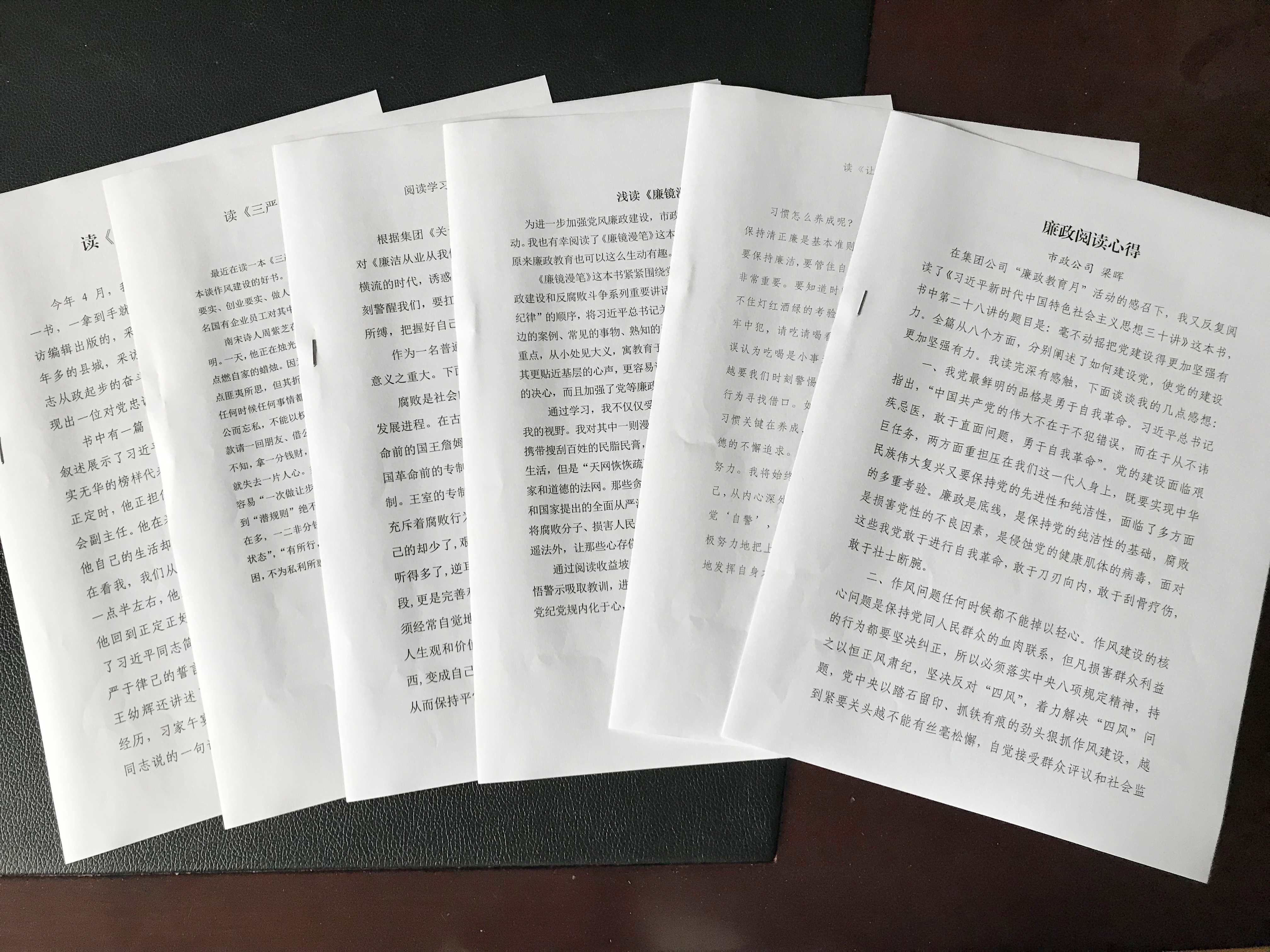 圖為集中學(xué)習(xí)現(xiàn)場 每月月度例會(huì)上,市政公司組織員工有針對性地學(xué)習(xí)集團(tuán)和市政公司的制度與流程。該公司制作了一本制度匯編,并分發(fā)到人手一本,要求員工認(rèn)真學(xué)習(xí),熟悉公司辦事流程和規(guī)章,工作中做到照章辦事,增強(qiáng)員工的制度觀念。 5月月初,市政公司組織開展讀書思廉活動(dòng),要求每位員工讀一本勤政廉政書籍,并撰寫一篇讀書心得。從一篇篇心得體會(huì)文章中,看到有從歷史廉政小故事切入的,也有從習(xí)近平總書記的新時(shí)代中國特色社會(huì)主義思想和十九大報(bào)告中領(lǐng)悟道理的,字字流露了真情實(shí)感,句句體現(xiàn)出真切感悟,真正做到了學(xué)有所悟,營造了良好的學(xué)廉思廉的氛圍。